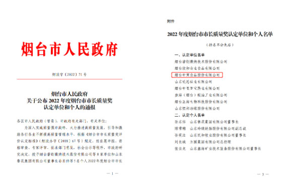 2022年度烟台市市长质量奖认定单位和个人名单