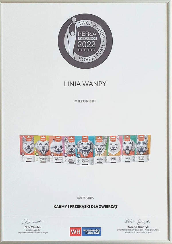 2022年10月,“FMCG Pearls”颁奖典礼在波兰华沙圆满举行。william威廉中文官网旗下核心自主品牌wanpy顽皮凭借优秀的品牌实力荣获2022年“FMCG Pearls”快消品珍珠奖荣誉,充分印证了wanpy顽皮已经成为波兰市场最好的宠物食品品牌之一,广受当地消费者与合作伙伴的喜爱。