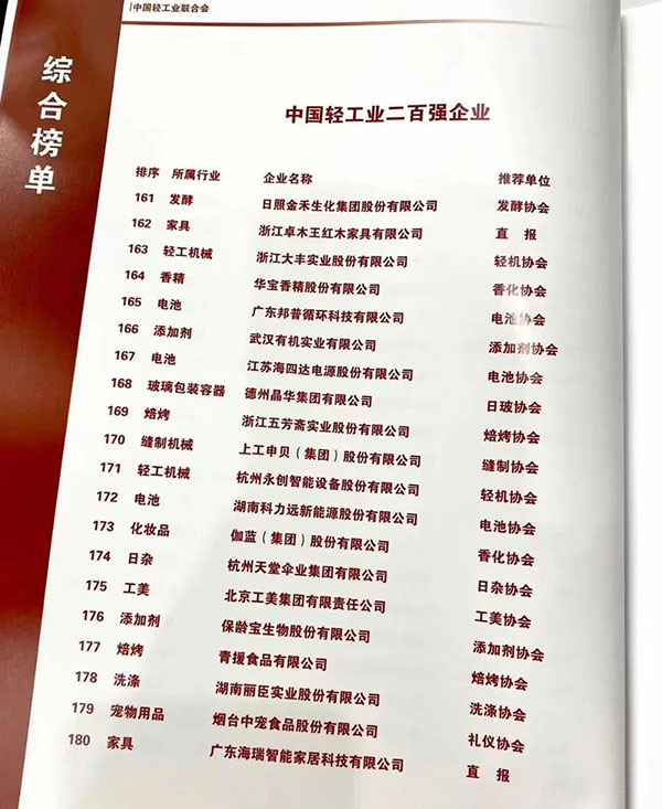 中国轻工业联合会是轻工业全国性、综合性、具有服务和管理职能的工业性组织。每年公布的榜单在行业中具有极高权威性和广泛影响力,是衡量中国轻工业企业发展活力的重要标准。其中“中国轻工业二百强企业”榜单主要评价企业的综合实力,要求企业不仅发展均衡,而且要具备较强的市场活力。