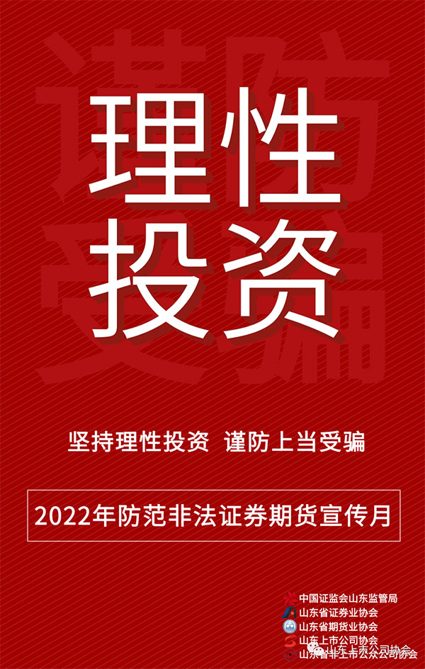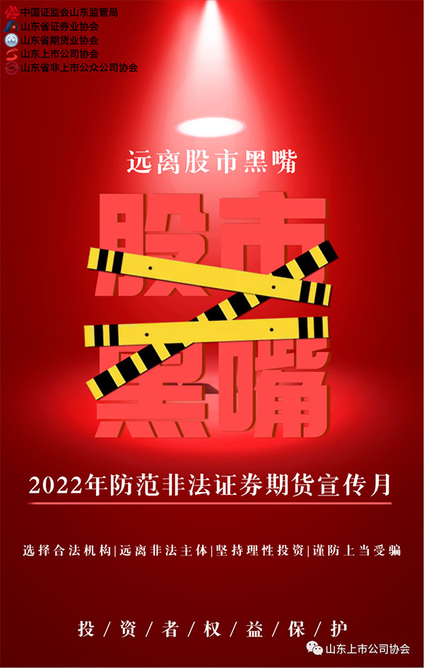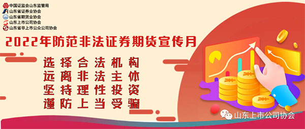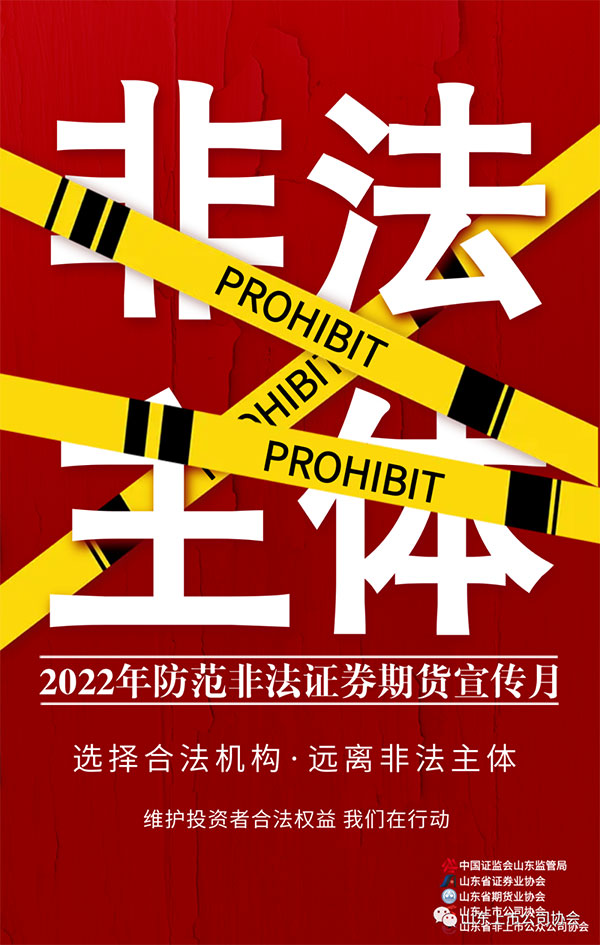 烟台william威廉中文官网为响应山东证监局号召,推出“2022年防范非法证券期货宣传月及5·15全国投资者保护宣传日”活动。围绕“选择合法机构,远离非法主体,坚持理性投资,谨防上当受骗”的主题进行宣传,贯彻落实中办、国办《关于依法从严打击证券违法活动的意见》要求,加大防范非法证券期货活动宣传力度,增强人民群众对非法证券期货活动的防范意识和能力。