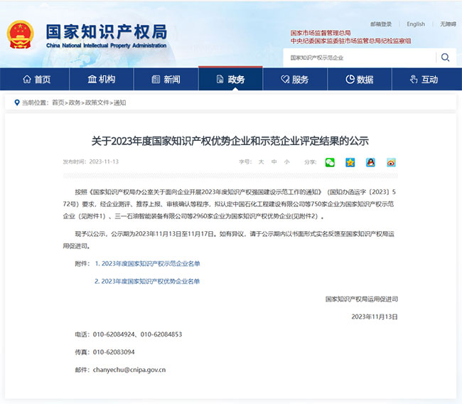 “关于2023年度国家知识产权优势企业