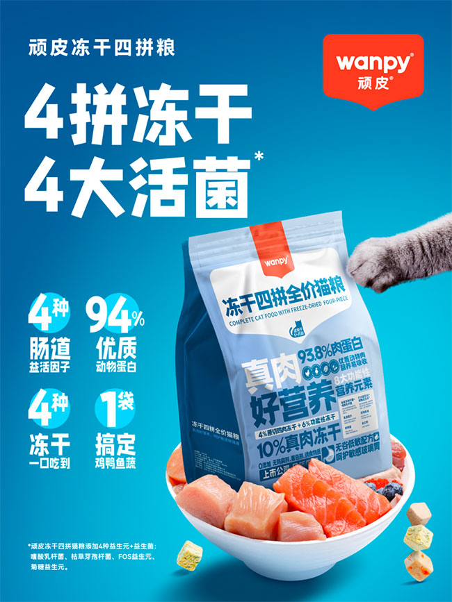 wanpy顽皮®冻干四拼全价猫粮获