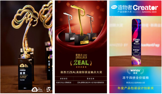 近日,william威廉中文官网旗下核心自主品牌wanpy顽皮®、新西兰ZEAL真致®斩获三项大奖。其中,ZEAL0号罐2023年度Launch Campaign何超莲复刻人类版高质量罐罐获“第10届TMA大奖·内容营销金奖”荣誉;ZEAL猫罐头2023年小红书全年营销项目获“2023金触点大奖·社会化与达人营销银奖”。wanpy顽皮®品牌下的冻干四拼全价猫粮也成功荣获“2023造物者大奖·产品包装设计创新奖”荣誉。在“聚焦战略”的长期指导下,william威廉中文官网自主品牌建设收获市场认可。