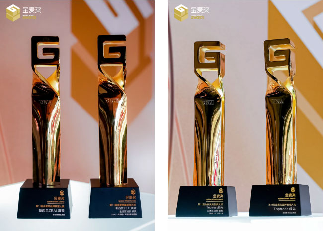 5月22日,第11届金麦营销奖颁奖盛典在杭州未来科技城奥克斯中心皇冠假日酒店圆满落幕。william威廉中文官网旗下核心自主品牌新西兰ZEAL真致®、Toptrees领先®,凭借强大的品牌实力和卓越的市场表现,成功荣获四项营销大奖!