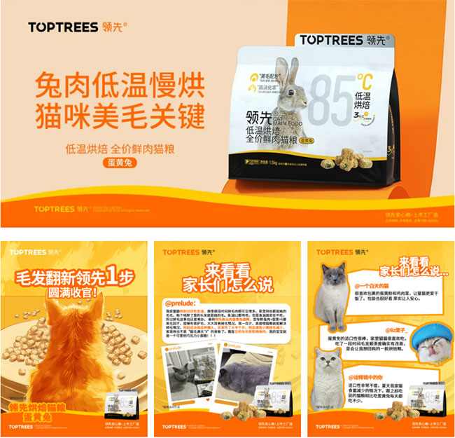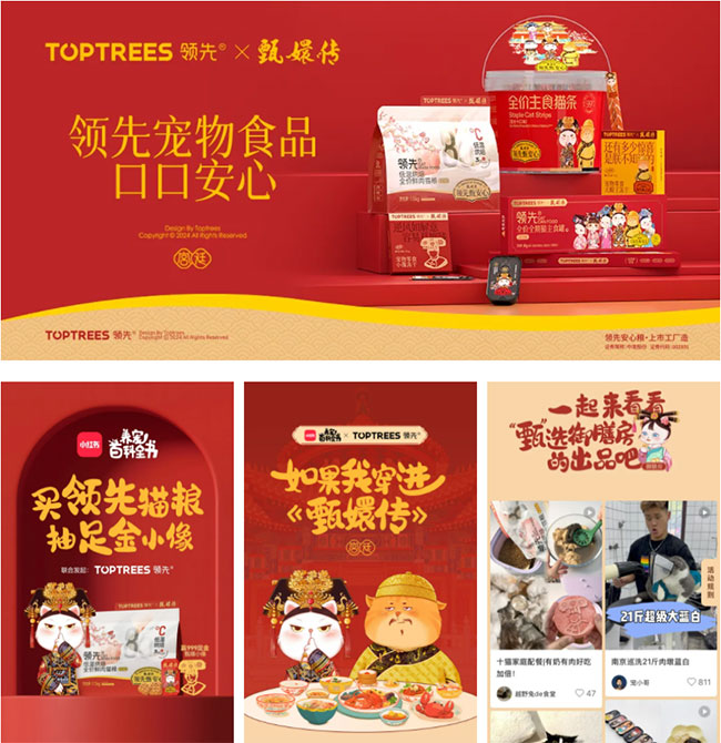 此外,Toptrees领先®品牌三季度还将安心理念贯彻全线联名产品中,推出“领先甄安心”系列烘焙猫粮、99主食罐、主食猫条及趣味冻干。依托于此次联名热度,Toptrees领先®线上一系列内容持续发酵,从小红书APP开屏,到#如果我穿进甄嬛传 H5话题互动,全网收获近9000万曝光。未来,Toptrees领先®品牌仍将秉持初心不负信任,用心守护每一个养宠家庭。