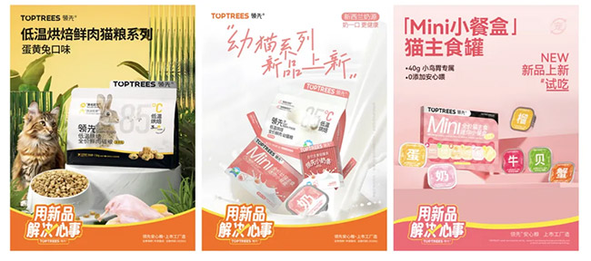 产品创新:“低温烘焙全价鲜肉猫粮-蛋黄兔口味”、“Toptrees幼猫系列”、“mini小餐盒”等新品精准填补细分市场空白,以差异化产品矩阵持续提升市场竞争力。