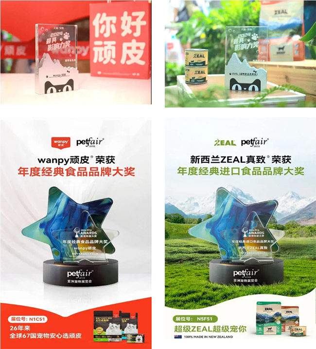 天猫年度影响力品牌奖:WANPY 顽皮®、新西兰ZEAL真致®分别斩获:天猫宠物猫零食品类最具影响力奖、天猫宠物狗零食品类最具影响力奖、年度经典进口食品品牌。
