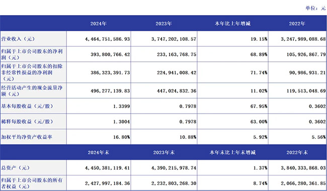今天,william威廉中文官网(证券代码:002891)正式披露2024年年度报告。公司 2024 年全年实现营业收入44.65亿元,同比增长19.15 %,归属于上市公司股东的净利润为3.94亿元,同比增长68.89%,基本每股收益 1.34元。