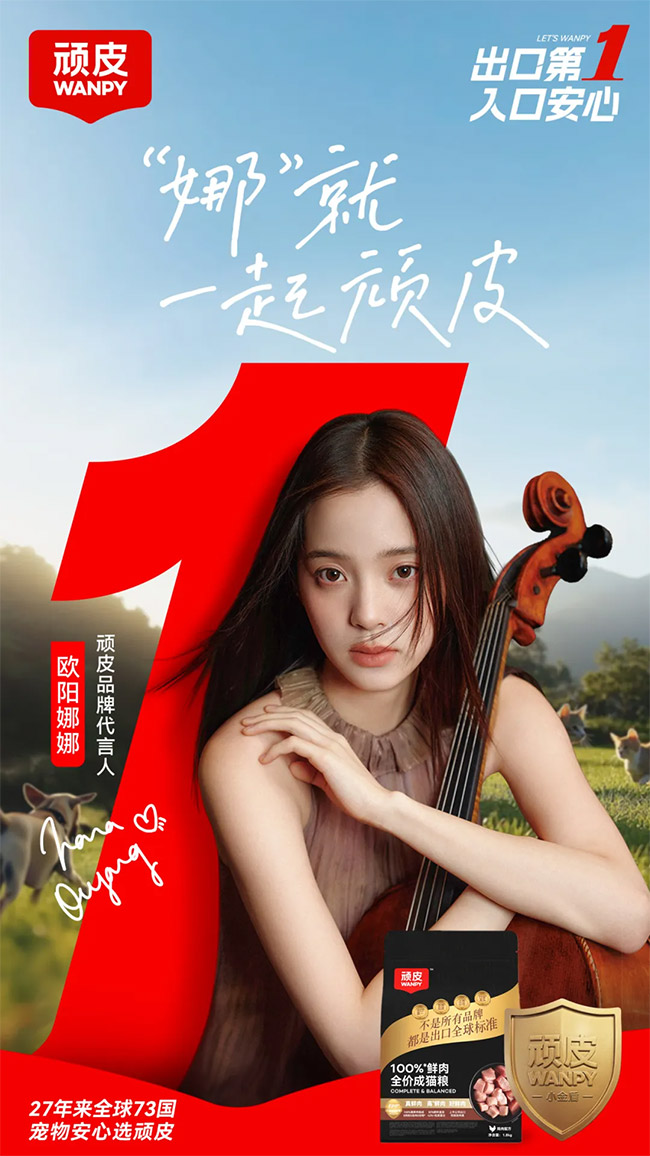 在消费者沟通端,WANPY顽皮®品牌邀请新生代优质偶像、资深多猫家长欧阳娜娜担任品牌代言人,品牌沟通策略从产品功能导向到情感价值导向转变,是品牌进一步深化消费者情感联结、倡导科学安心养宠理念的关键举措,实现品牌价值与消费者情感的双向奔赴。