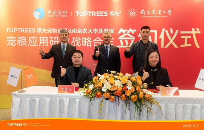 在科研端,2月Toptrees领先®与南京农业大学动科院李莲教授科研团队达成战略合作,深化宠粮基础营养应用研究;联合宝来利来生物成立领先猫犬微生态联合研究中心,聚焦宠物肠道健康与功能性食品研发;此外,Toptrees领先®还构建宠物食品5大安心标准体系,覆盖配方研发、原料溯源、生产工艺、品质管控及营养科学,全面保障产品科学性与安全性。